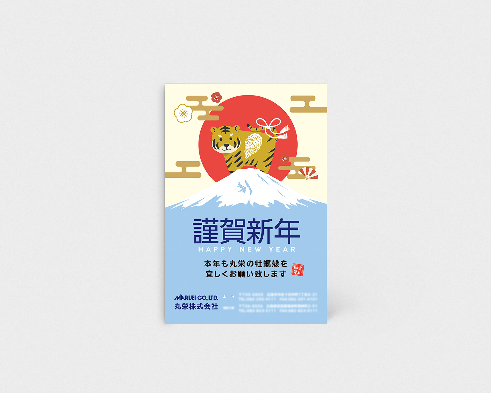 牡蠣殻を使った肥料・飼料などの製造販売事業を展開する丸栄株式会社さまよりご依頼をいただき、年賀状デザインを制作させていただきました。